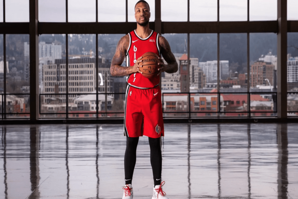 Aqui está sua primeira olhada em Damian Lillard e CJ McCollum usando suas novas camisas.